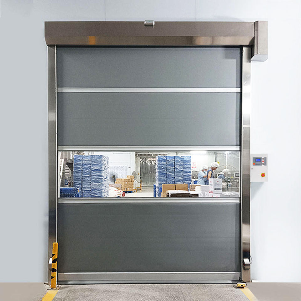 Porte à enroulement industrielle en PVC haute vitesse sur mesure avec moteur servo et sécurité infrarouge pour la logistique d'entrepôt