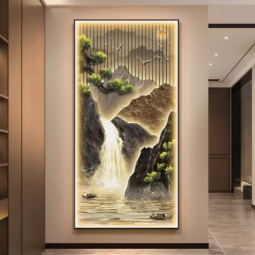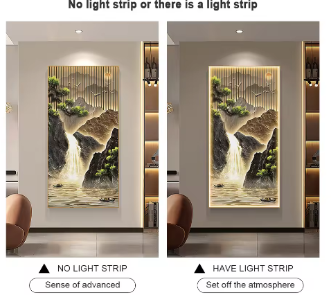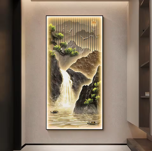 Peinture de paysage en gros personnalisée avec éclairage LED, cadre en métal pour la décoration de la maison, art mural, peintures murales