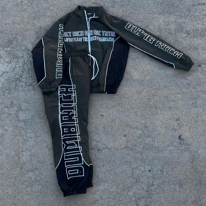 Ensemble survêtement coupe-vent personnalisé en gros avec veste en nylon réfléchissant 3M et pantalon de survêtement en nylon pour homme