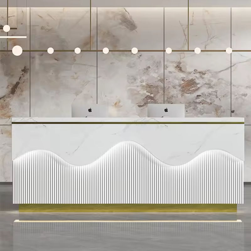 Bureau de réception extensible de luxe en plastique PETG, mobilier de bureau commercial moderne pour hôtel, centre commercial, hôpital, salle de sport