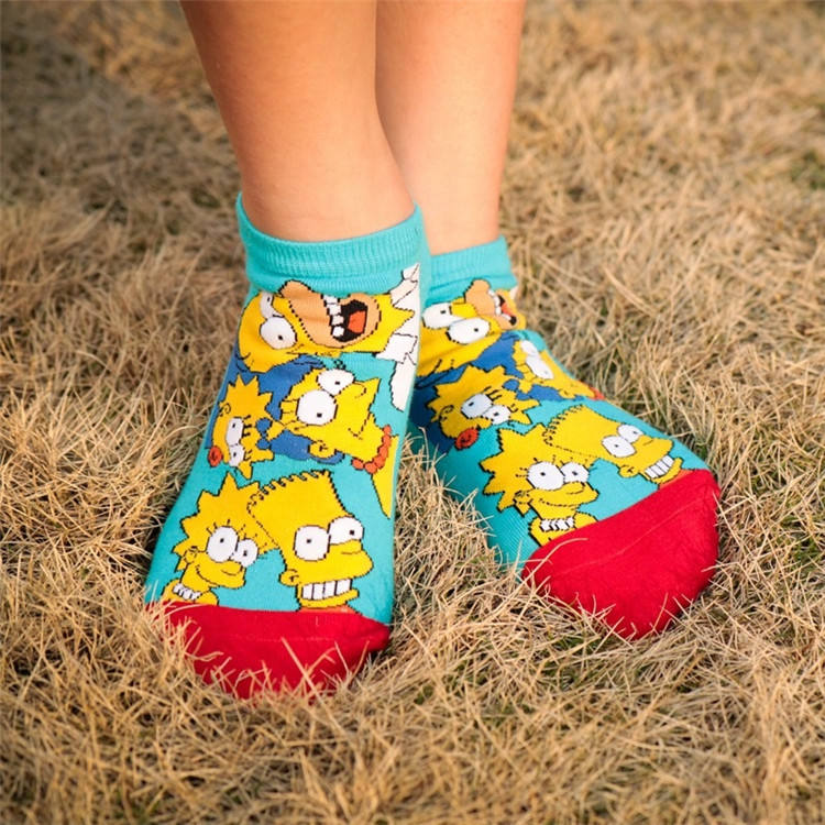 Chaussettes en coton pour homme et femme, personnalisées, de haute qualité, avec Design de dessin animé, Simpsons, vente en gros