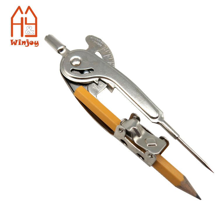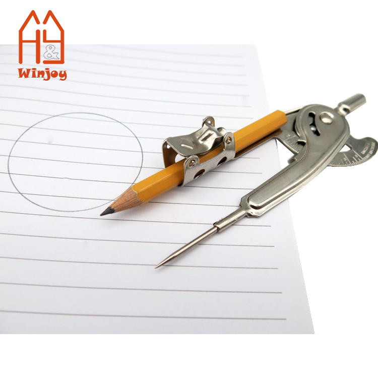 Ensemble de géométrie de boussole à dessin en acier inoxydable en métal, outil de séparateurs de dessin mathématique avec crayon jaune.