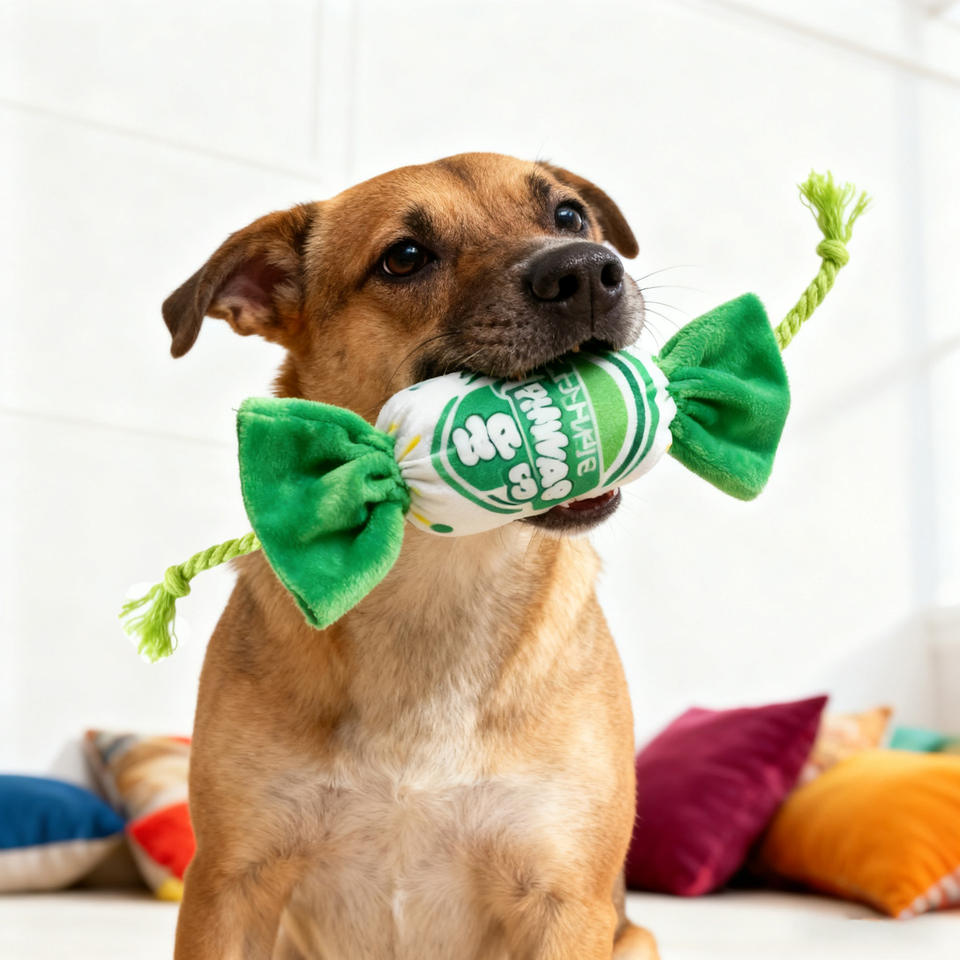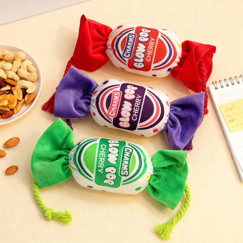 Jouet pour chien en peluche doux et amusant, série de bonbons personnalisée en gros, nouveau design, jouet qui couine, ensemble de jouets qui couinent pour chien