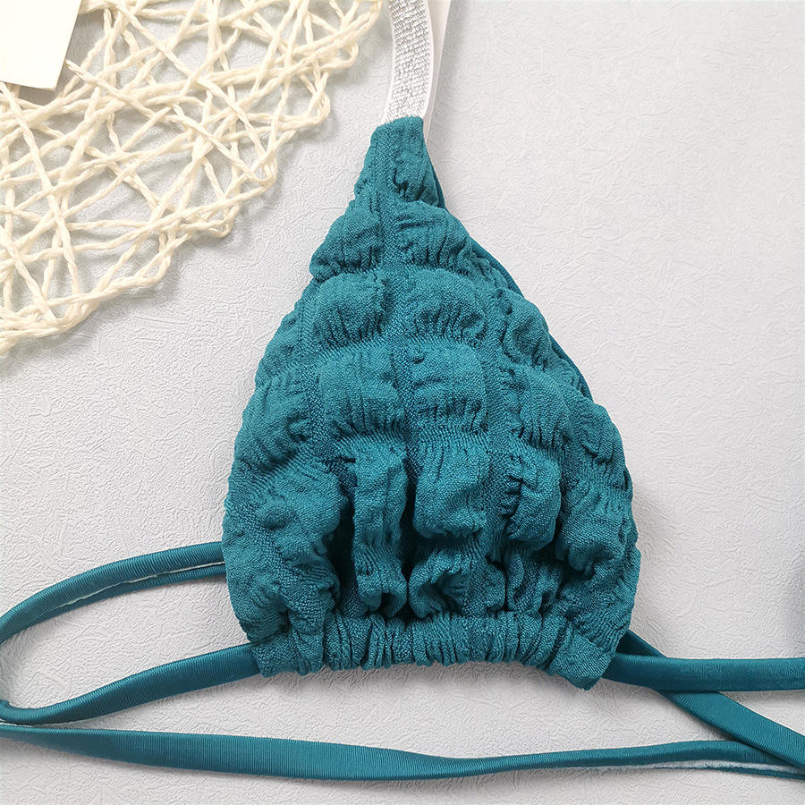 Custom Wholesale New Sexy Triangle Silver Band Bubble Cloth Sexy Bikini Two Piece Swimsuit Women Beachwear