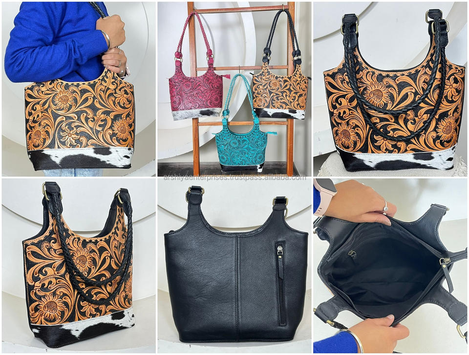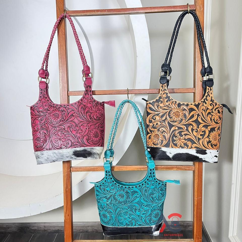 Product Name:Hand Tooled Cowhide Leather Tote Bag