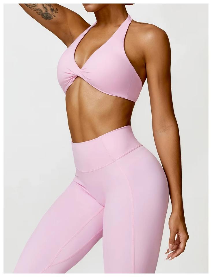 Ensemble de sport sans couture personnalisé pour femmes, soutien-gorge de sport dos nageur et leggings de compression, tenue de fitness marron terre