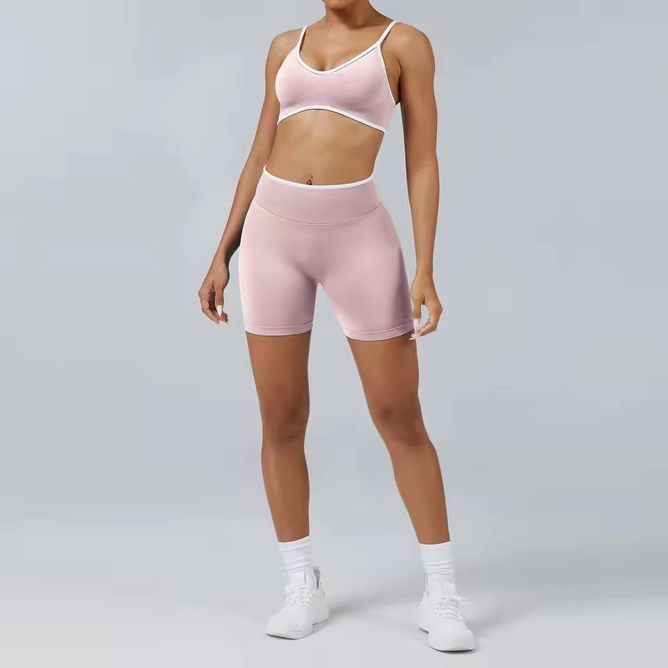 Ensemble 2 pièces personnalisé sexy dos nu pour le sport : soutien-gorge et short de fitness respirant, antibactérien, séchage rapide pour le yoga et le cyclisme