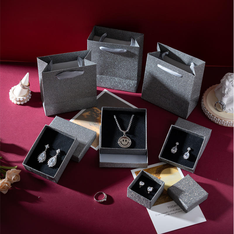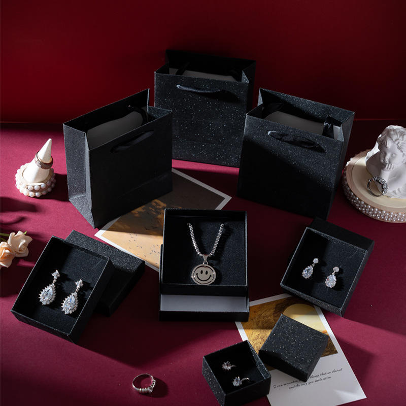 Boîte d'emballage de bijoux en gros personnalisée, carrée, dorée, à motif solide, avec tiroir pour bagues, boucles d'oreilles, colliers, bracelets