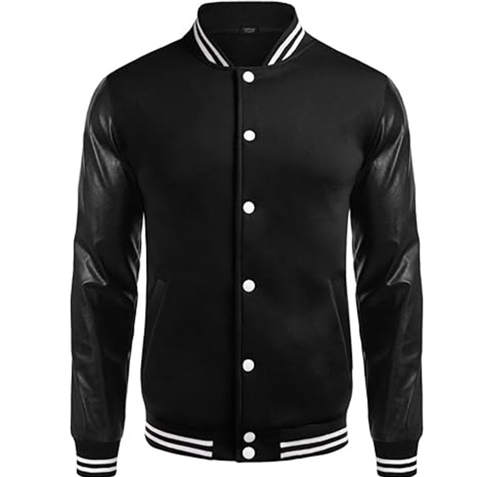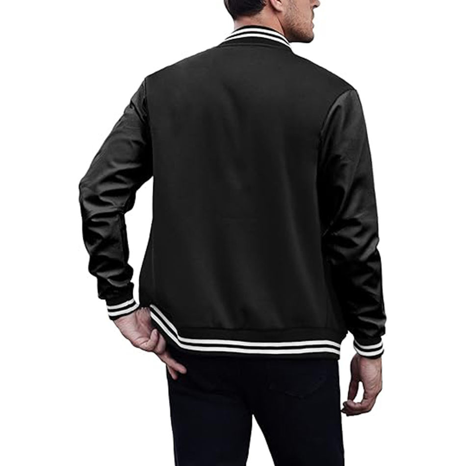 Veste universitaire décontractée pour lycéens, en cuir épais, à manches longues, avec broderie et patchwork, personnalisable en gros