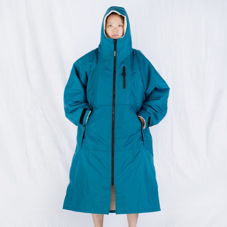 Vente en gros sur mesure hiver peignoir réfléchissant imperméable à l'eau recyclé parka de bain en fibre pour hommes surf garçons fermeture éclair