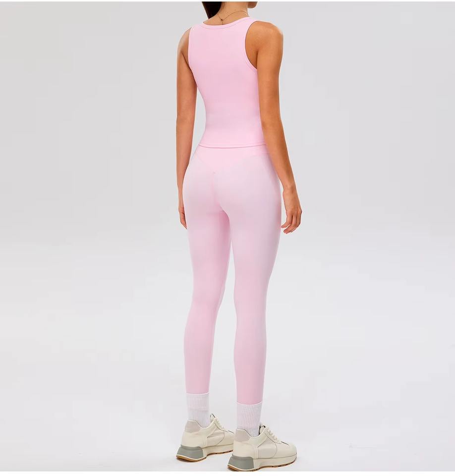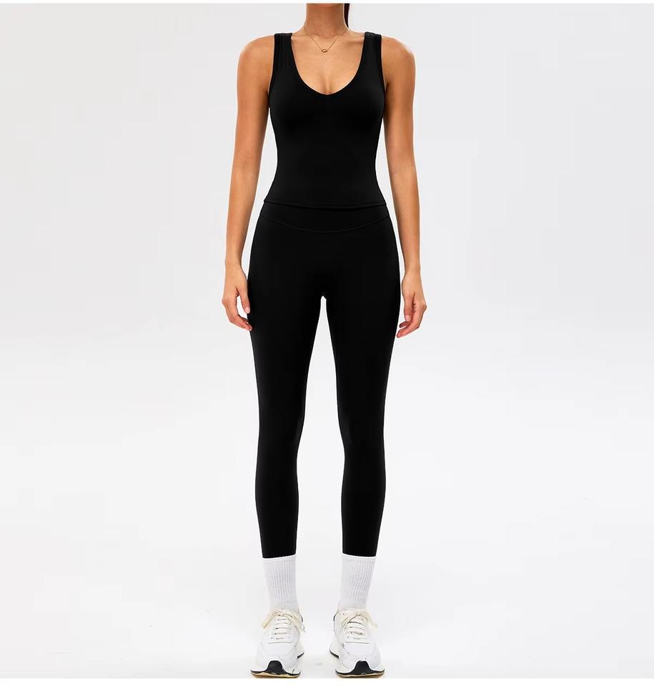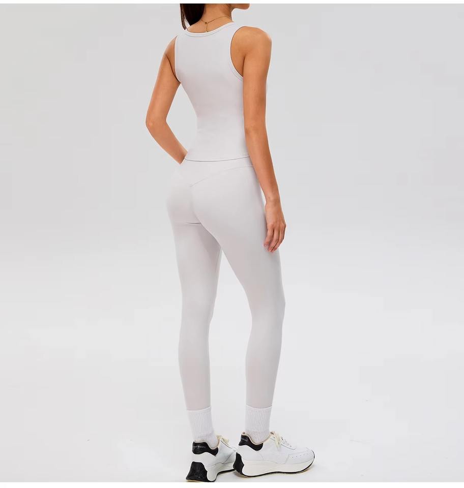 Ensemble de yoga personnalisé pour femmes, vente en gros, taille haute, compression, débardeur col U et leggings avec contrôle du ventre