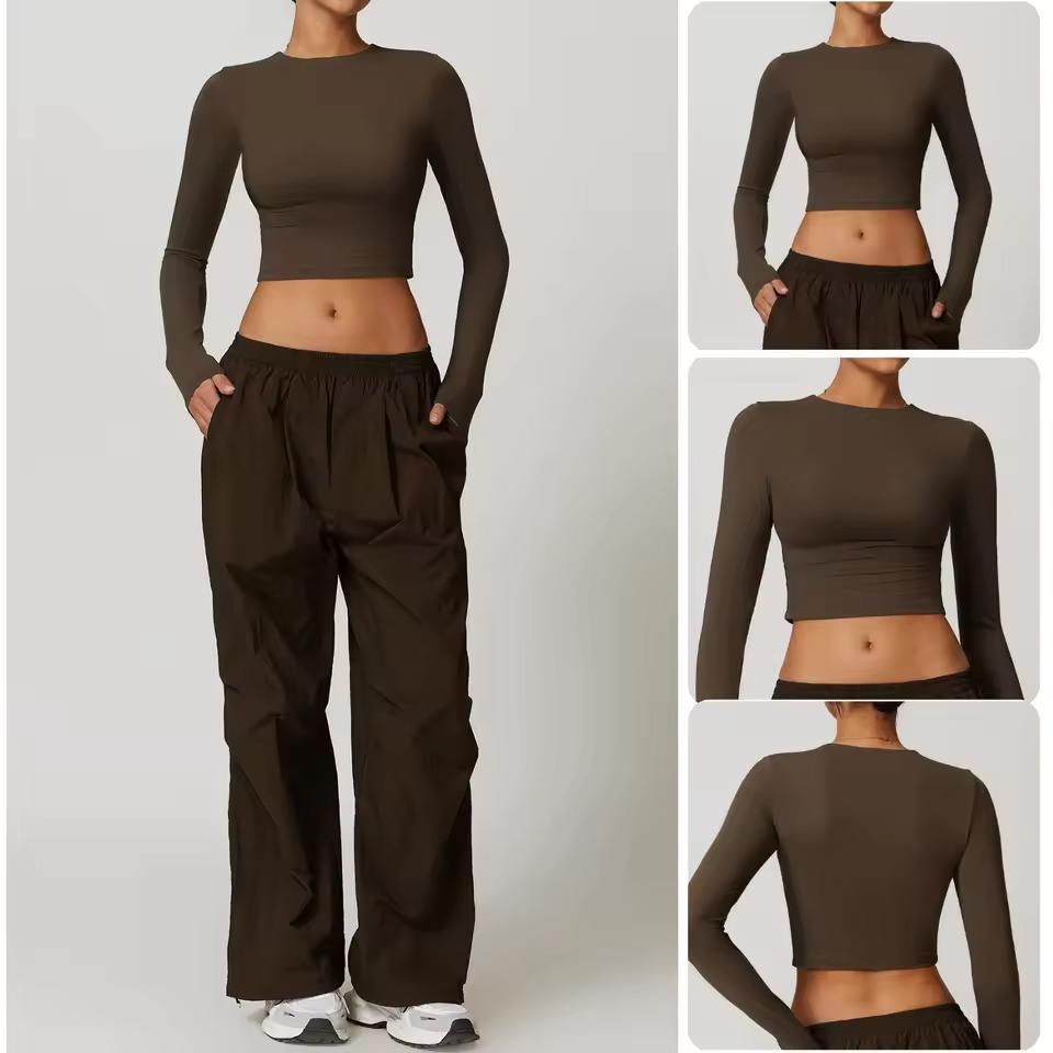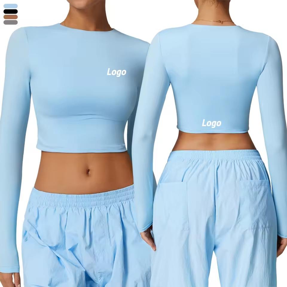 Haut court côtelé à col montant et manches longues pour femme, vente en gros personnalisée, idéal pour la gym et le yoga, collection été, offre spéciale