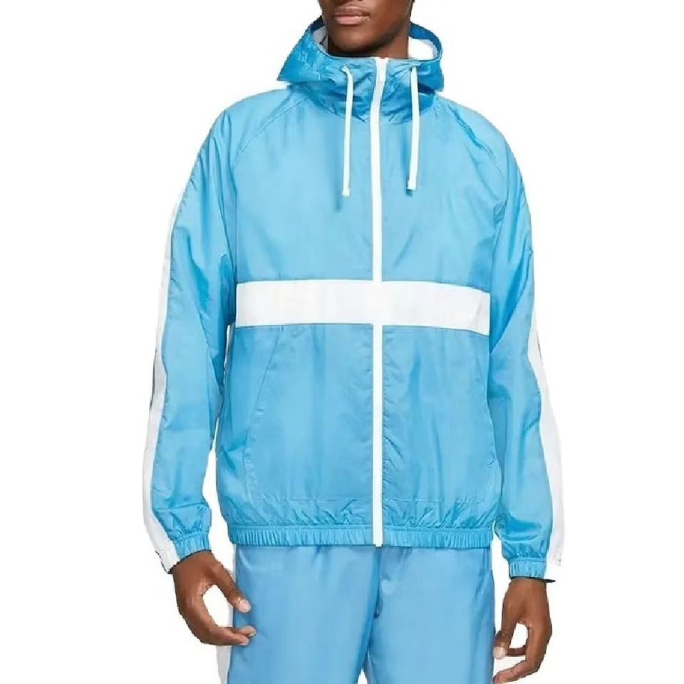 Ensemble survêtement homme personnalisé en nylon patchwork, coupe-vent léger, imperméable et résistant au vent, avec sweat à capuche et pantalon de survêtement