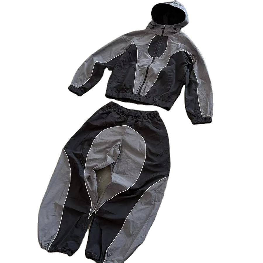 Custom Windbreaker Zip up Jacket Windproof Joggers Nylon Wind Breaker Cargo Pants Sweat Pant Tracksuit Unisex Jogging Suits Set