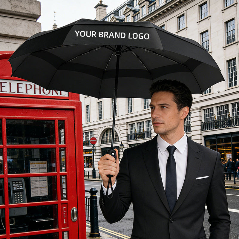 Parapluie pliant personnalisé anti-vent compact avec logo – Parapluie automatique double auvent pour cadeaux d'affaires