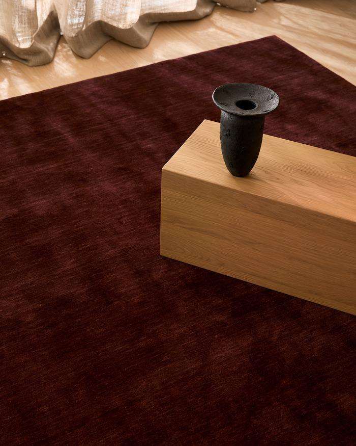Tapis en laine tufté à la main rouge bordeaux personnalisé, peluche douce, poils coupés 15 mm, tapis moderne fait main, tapis de sol durable, couleur unie