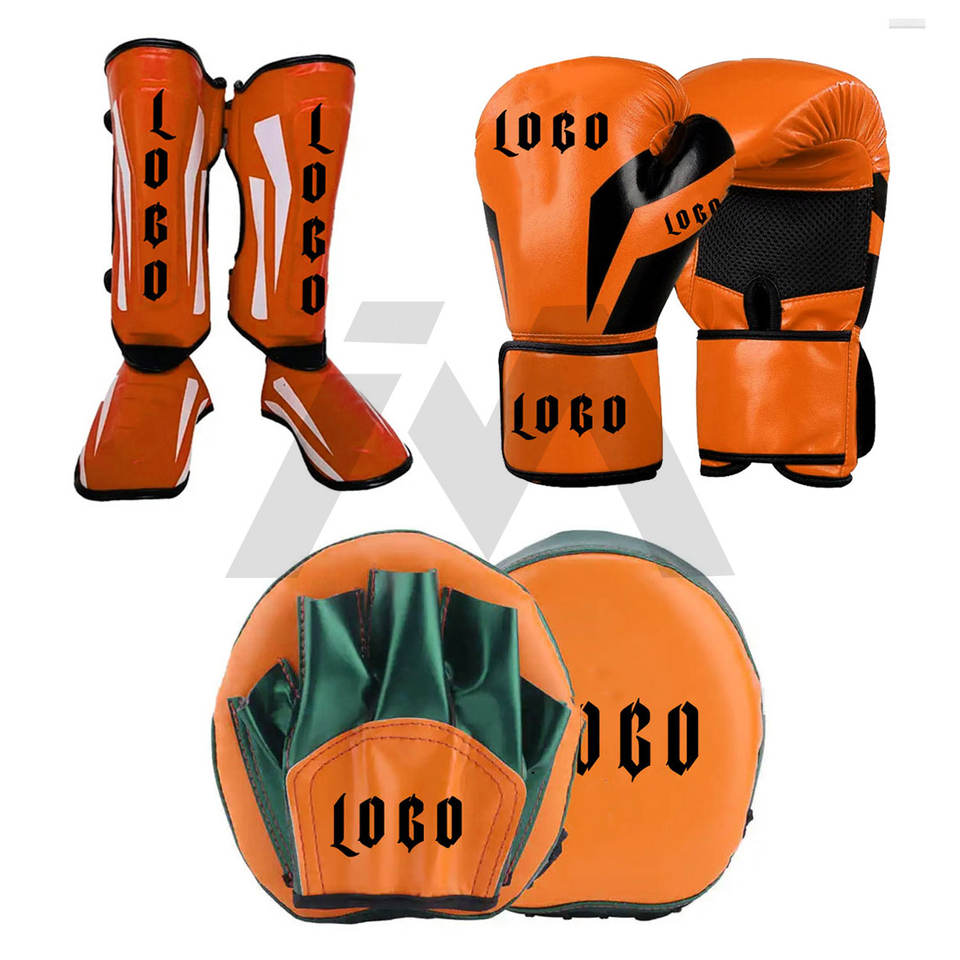 Custom Winning Leather Boxing Gloves with Personalized logo Professional Training Sparing Boxing Gloves Focus Pad Shin Guard Set