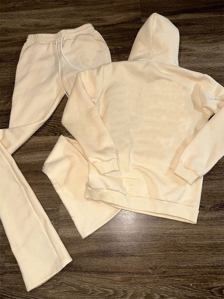 Ensemble de survêtement vintage personnalisé en coton tissé pour homme, coupe ajustée, pantalon évasé et sweat à capuche, séchage rapide