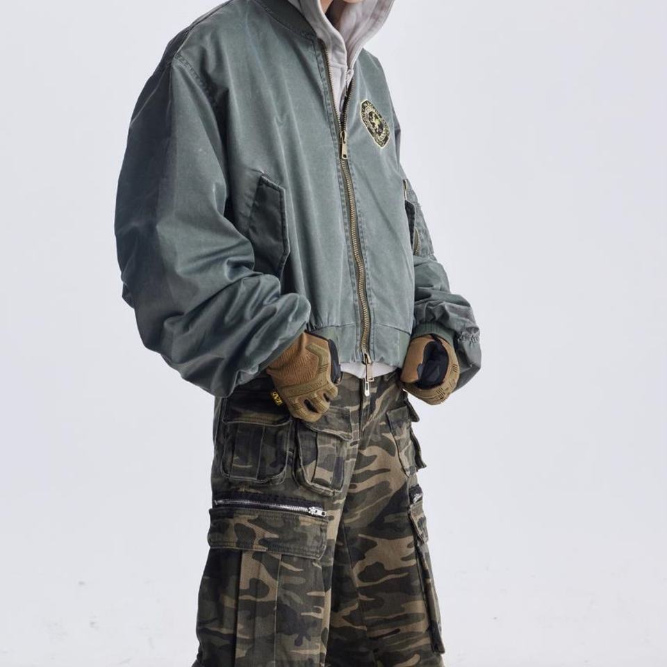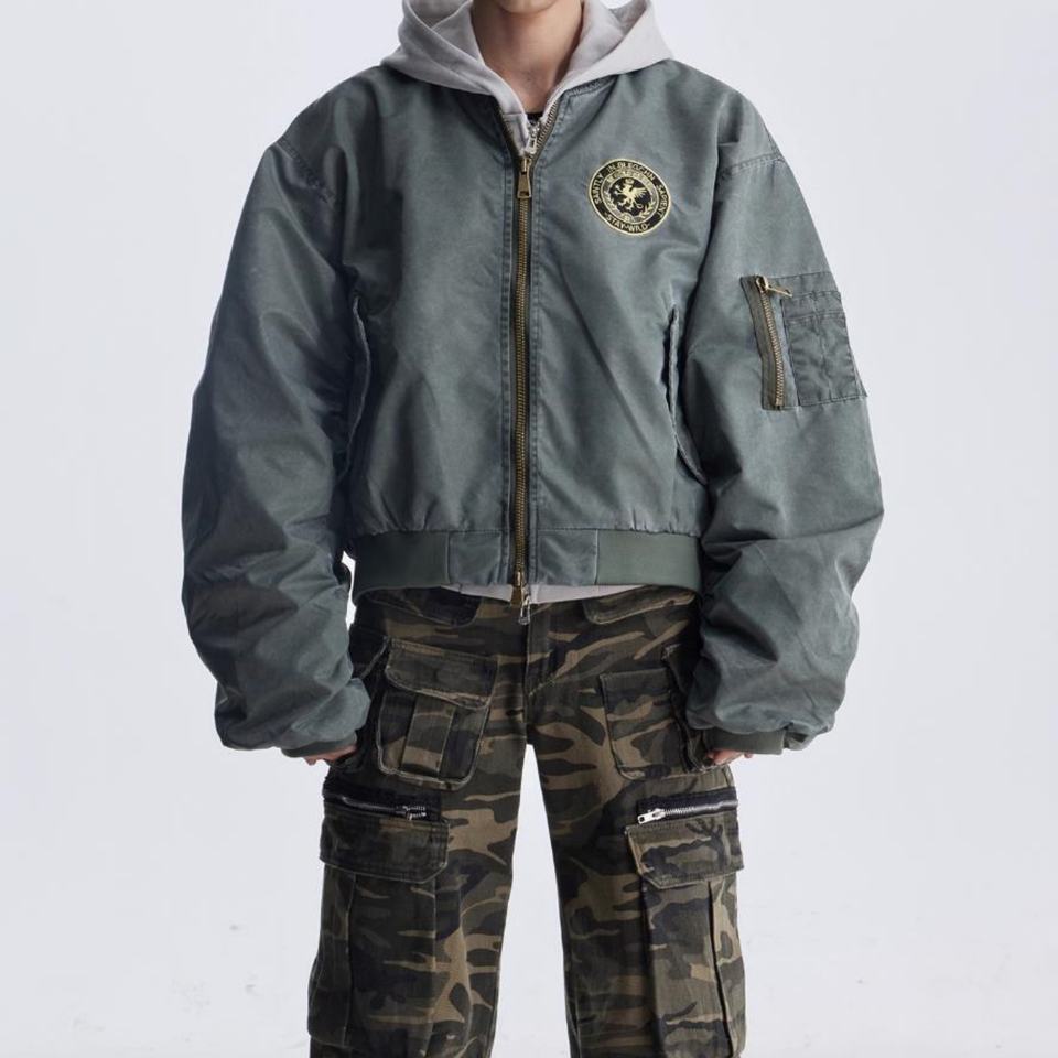 Veste bomber ample et délavée, coupe ample, avec logo sur le devant, coupe-vent, écologique, pour homme, fabriquée sur mesure, pour l'hiver, style streetwear