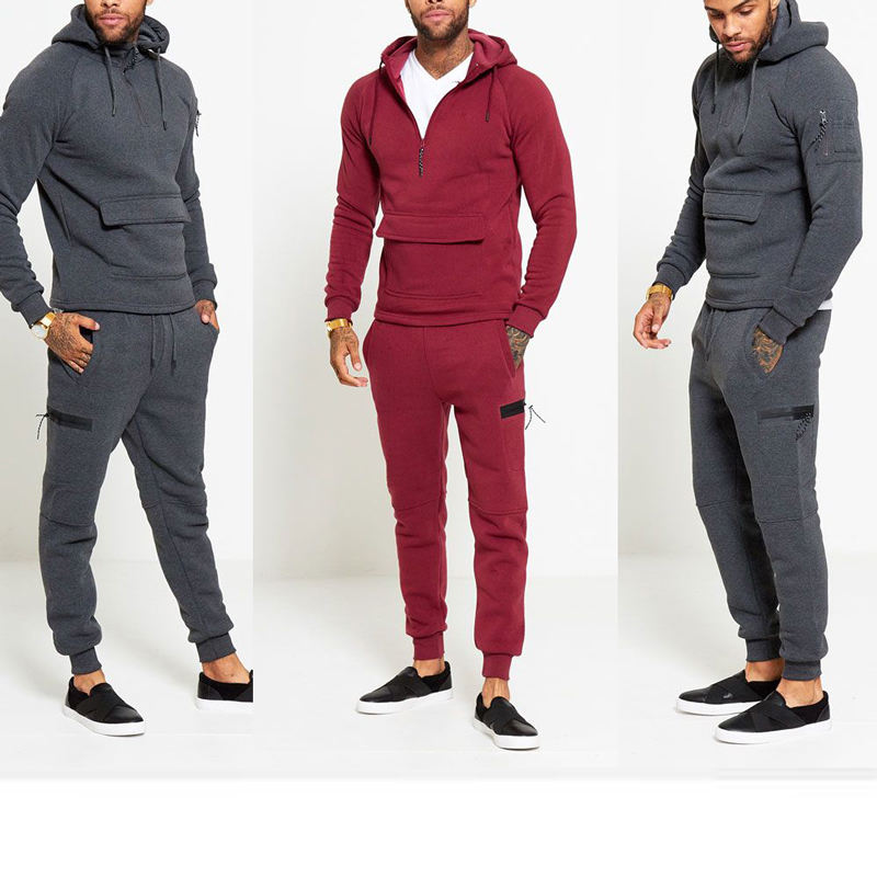 Ensemble de survêtements Hip Hop d'hiver personnalisés pour hommes broderie 100% coton survêtement à capuche pantalon de survêtement sweat à capuche uni survêtement