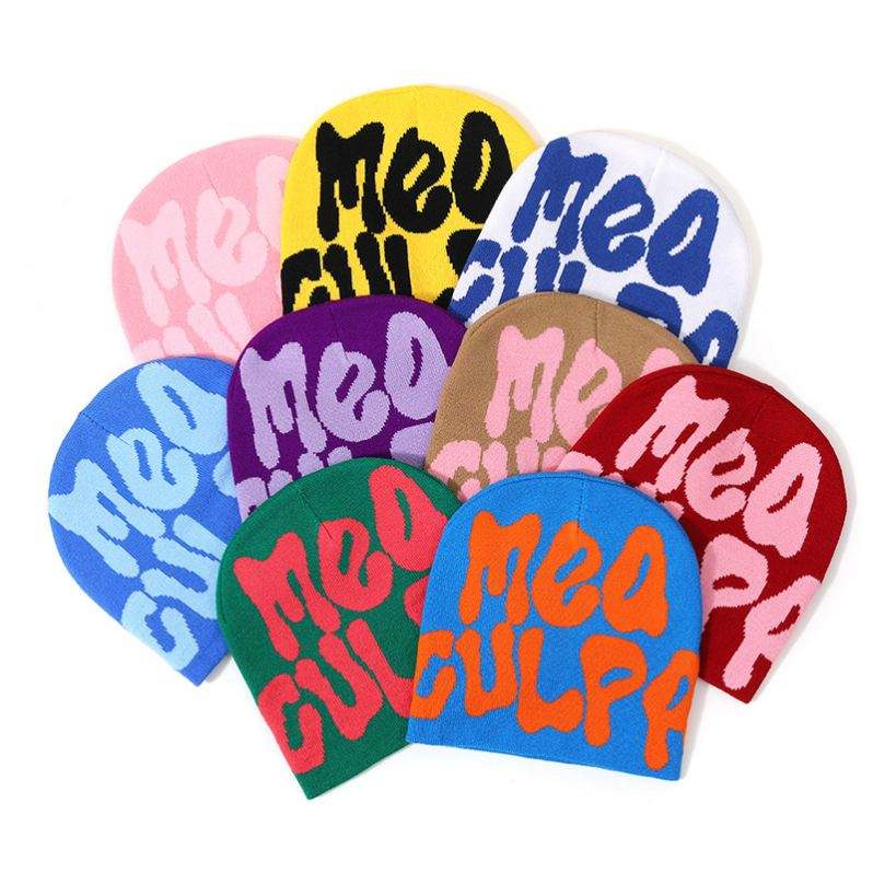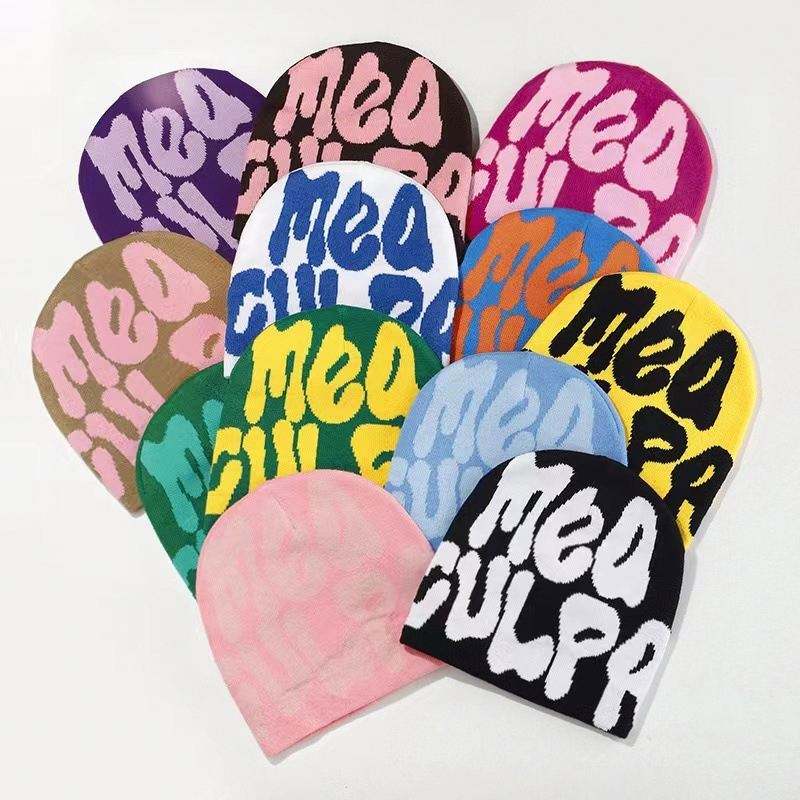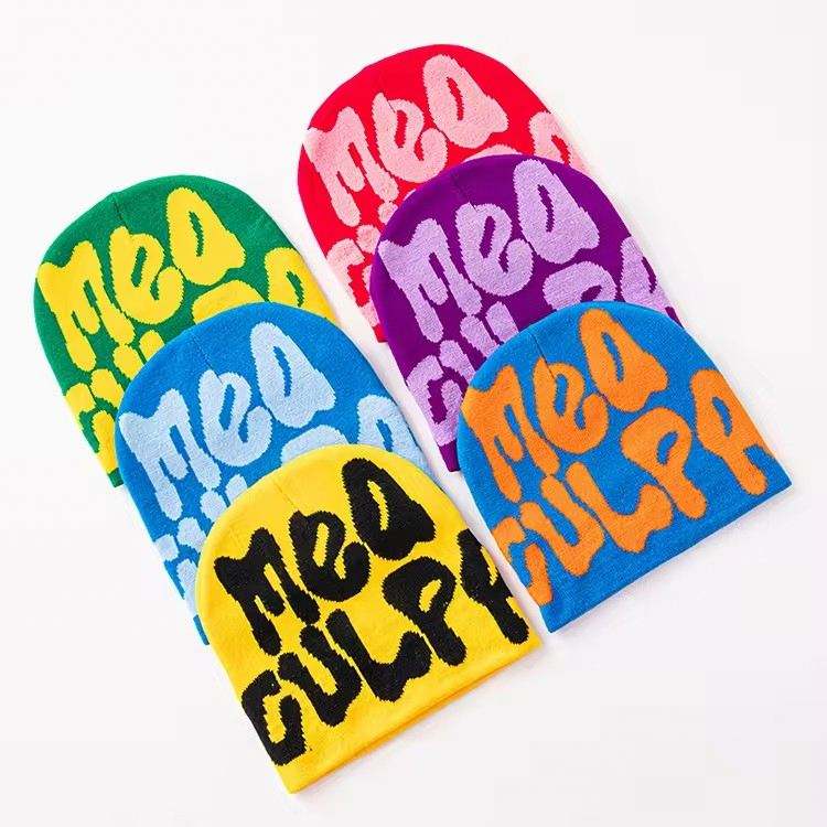 Bonnet Y2K Mea Culpa personnalisé en acrylique tricoté jacquard, avec logo sur mesure, vente en gros, collection hiver très prisée