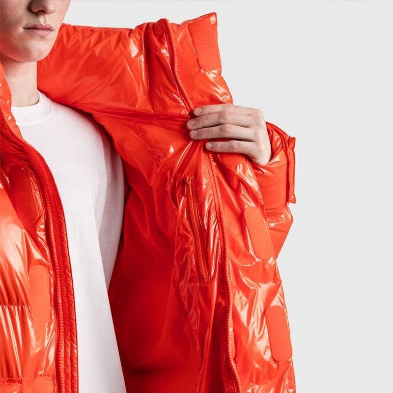 Blouson d'aviateur surdimensionné unisexe à fermeture éclair enduit sur le devant pour l'extérieur, chaud et brillant pour l'hiver