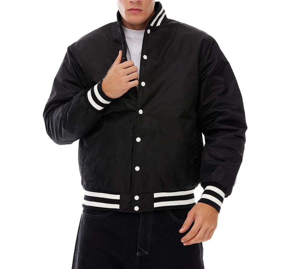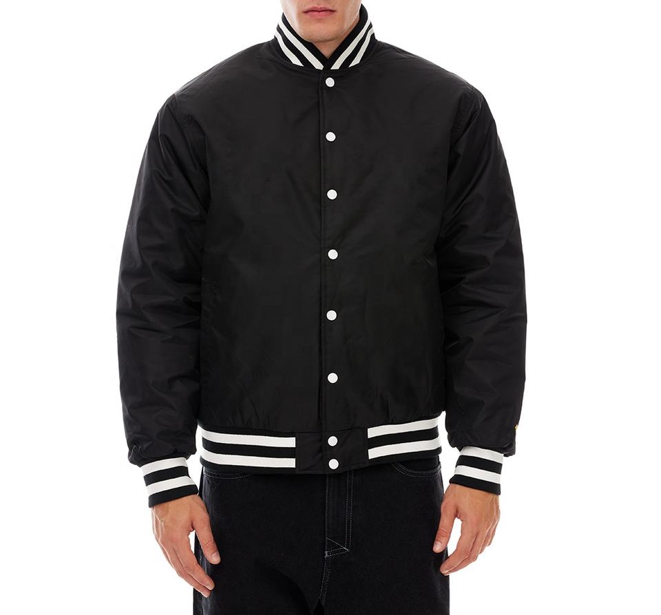 Veste universitaire d'hiver personnalisée en gros, satin brillant de haute qualité, service OEM avec logo frontal, marque privée