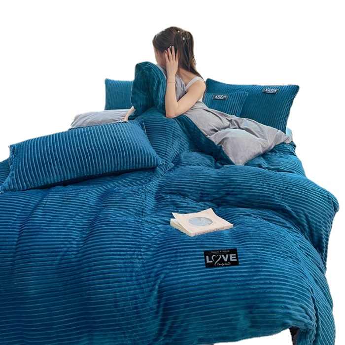 Housse de couette double en flanelle tissée unie, velours polaire, luxe, pour lit king size, écologique, collection hiver