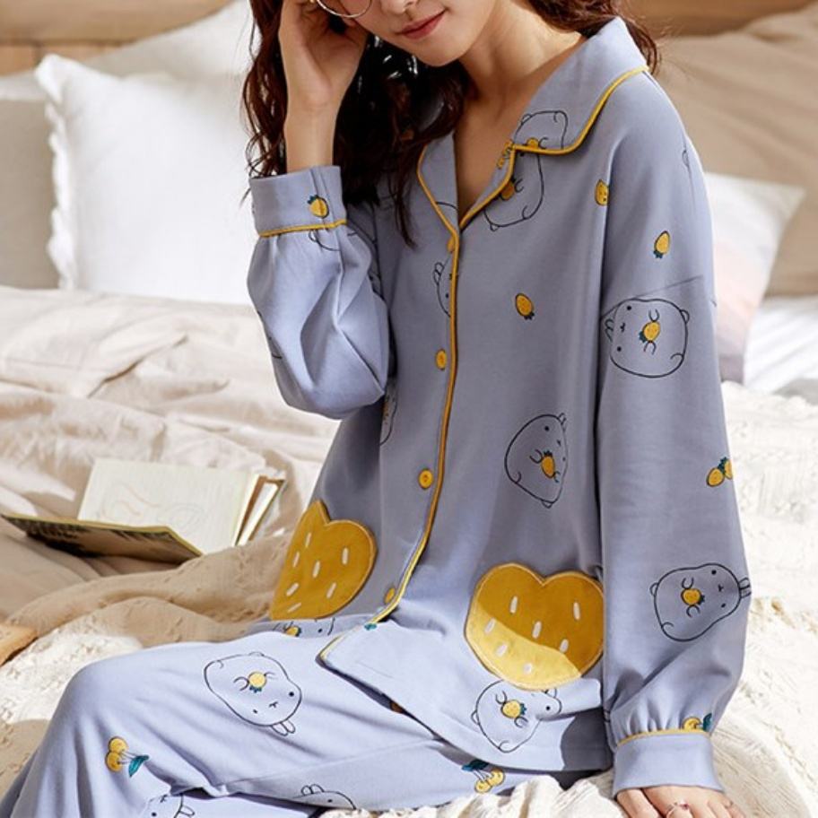 Keywords:Sleepwear Cartoon Printed Long Sleeve Pyjama Sets