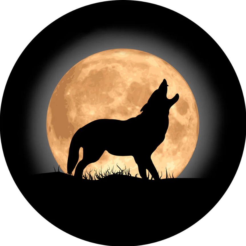 Housse de roue de secours personnalisée avec loup et lune dorée, scène nocturne sauvage, logo personnalisé pour SUV, camion, cadeau pour homme