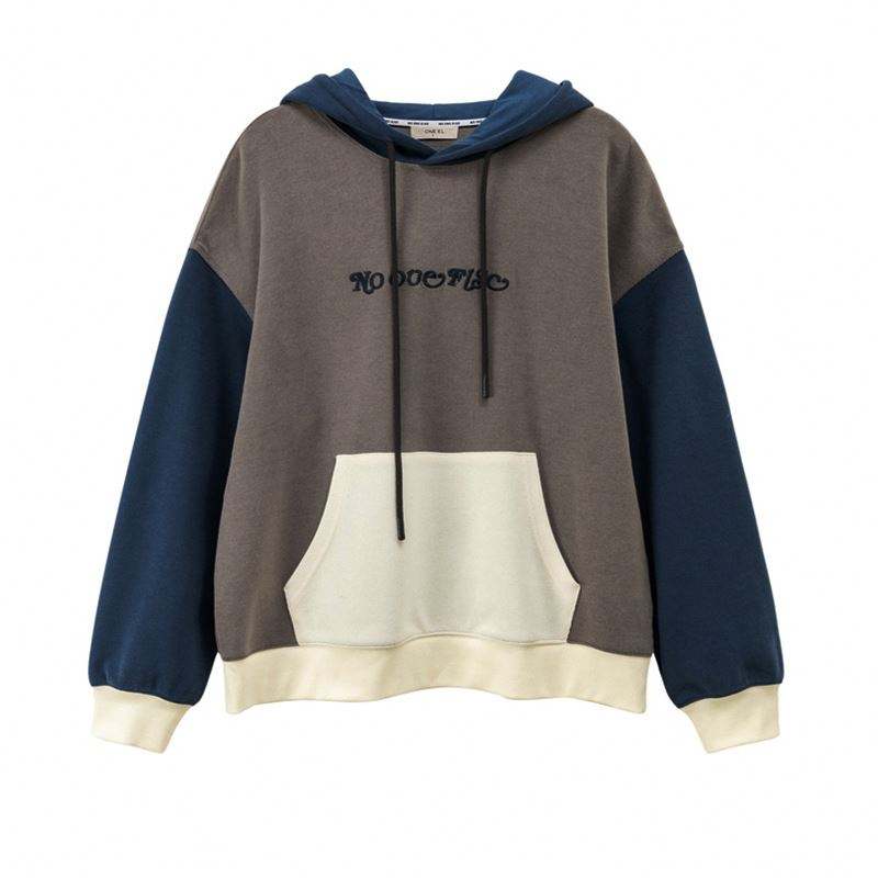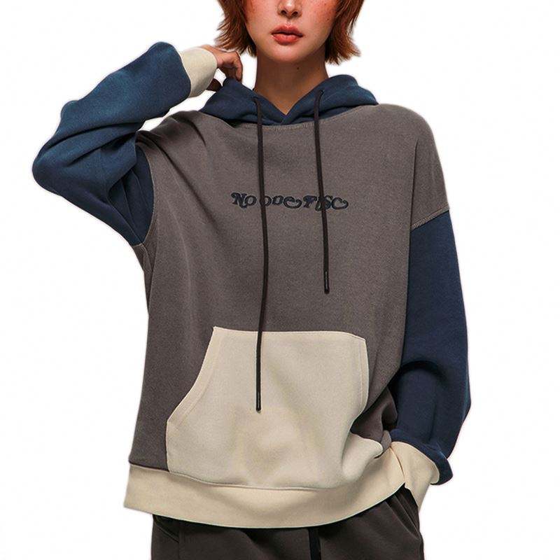 Sweat-shirt à capuche personnalisé pour femme, tricoté, brodé, décontracté, automne, color block, logo frontal