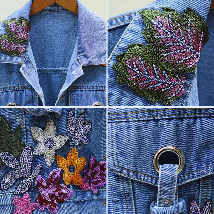 Veste à capuche en jean personnalisée pour femme avec broderie florale sur tout le pourtour respirant et motif uni pour la saison d'automne