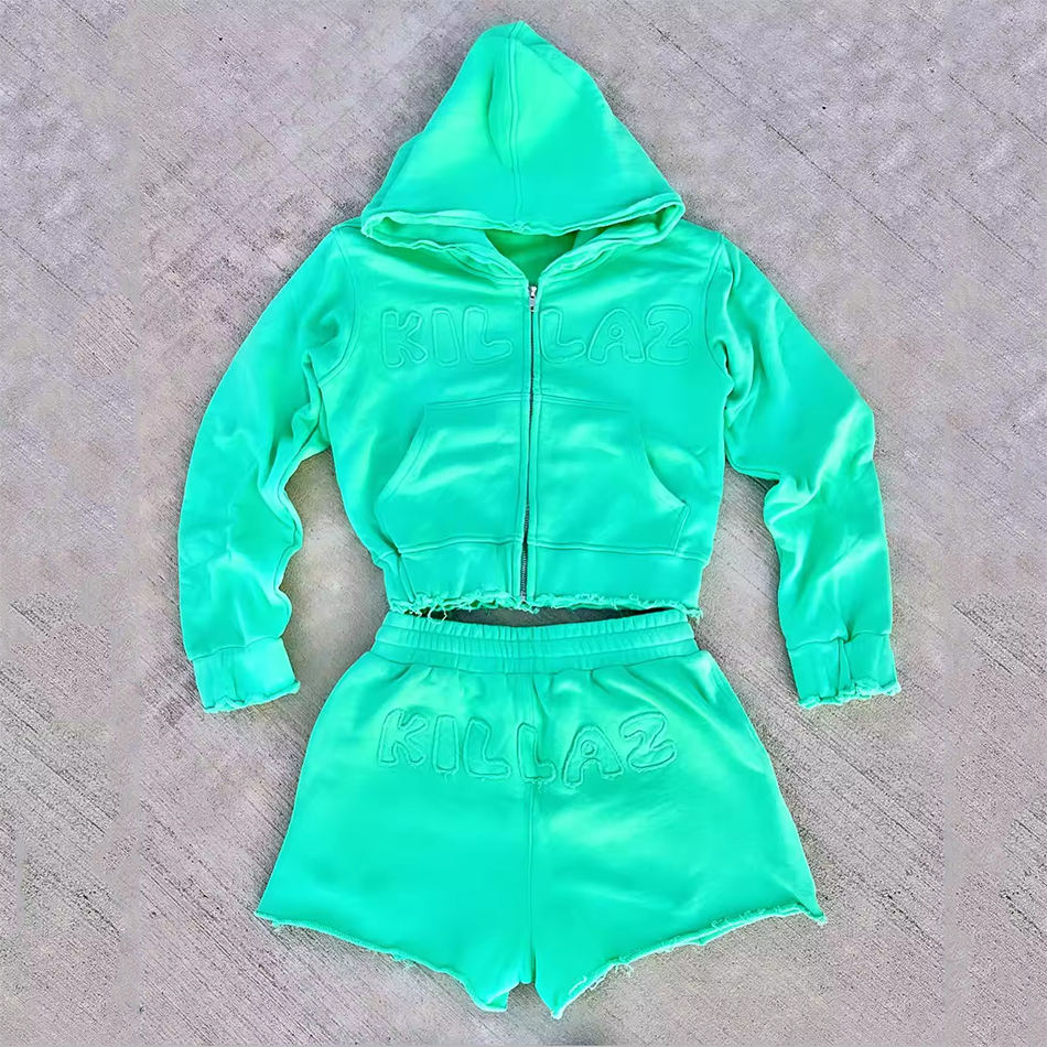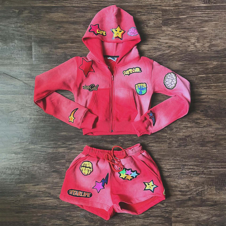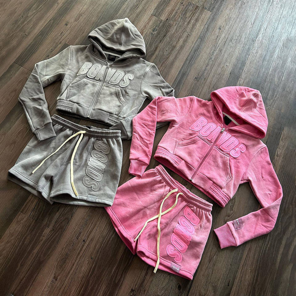 Ensemble 2 pièces personnalisé pour femmes Shorts en coton brodé Y2K Ensemble short et sweat à capuche court Survêtements pour femmes