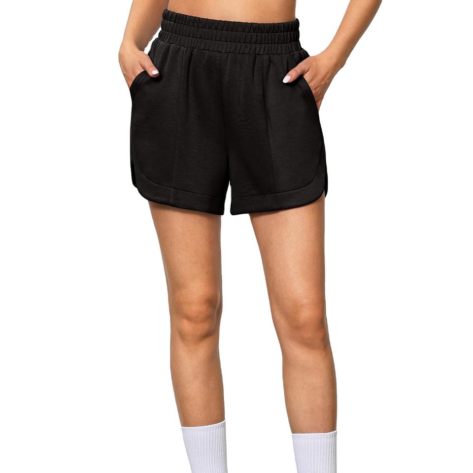 Short de sport personnalisé pour femmes Short de sport confortable à enfiler avec élastique taille haute Short de sport d'été décontracté avec poches 2026