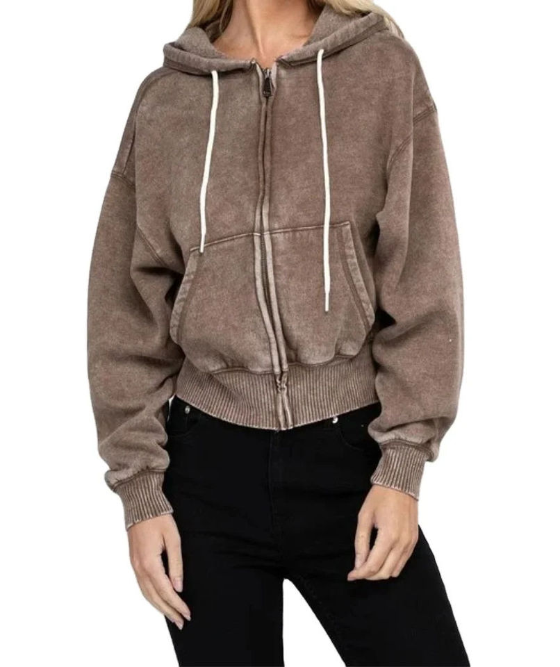 Sweat à capuche personnalisé pour femme, blanc, délavé au soleil, fermeture éclair, style délavé à l'acide, fermeture éclair, cordon de serrage, tissu en molleton français, style délavé, sweat à capuche pour femme