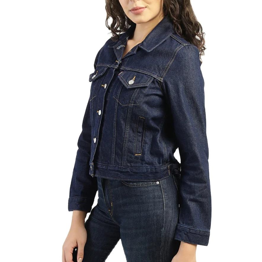Vestes en jean bleues pour femmes sur mesure, boutons, écologiques, de haute qualité, coupe ample, vêtements d'extérieur décontractés, fournisseurs en gros 2026