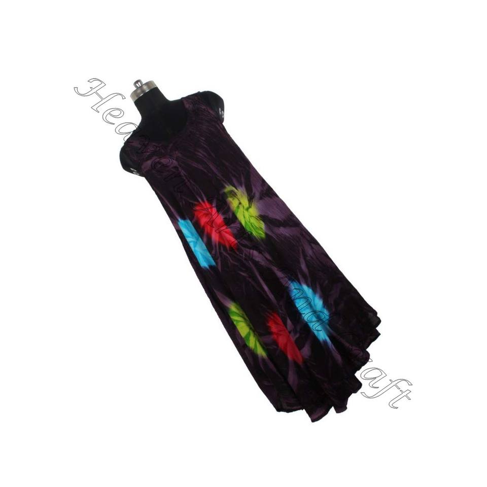 Custom Women Casual Tie Dye Print Long Sleeveless Summer Women Tie Dye Dress Women Umbrella Dress Tie Dye Colorful Design Rayon