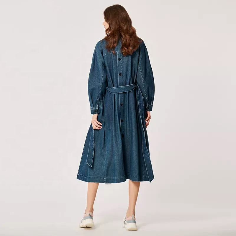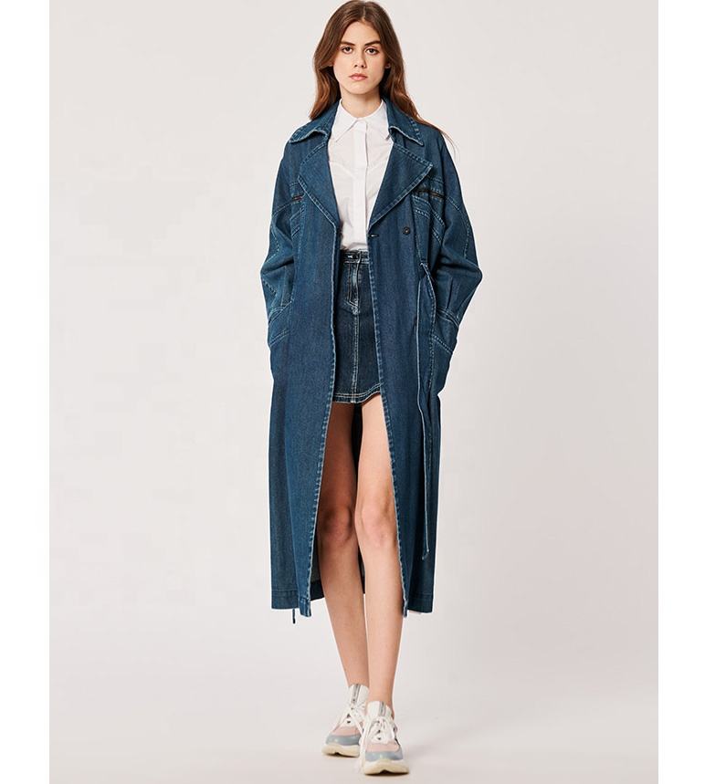 Custom Women Denim Jackets Belt Ladies Denim Jackets Trendy Long Jean Overcoat Women