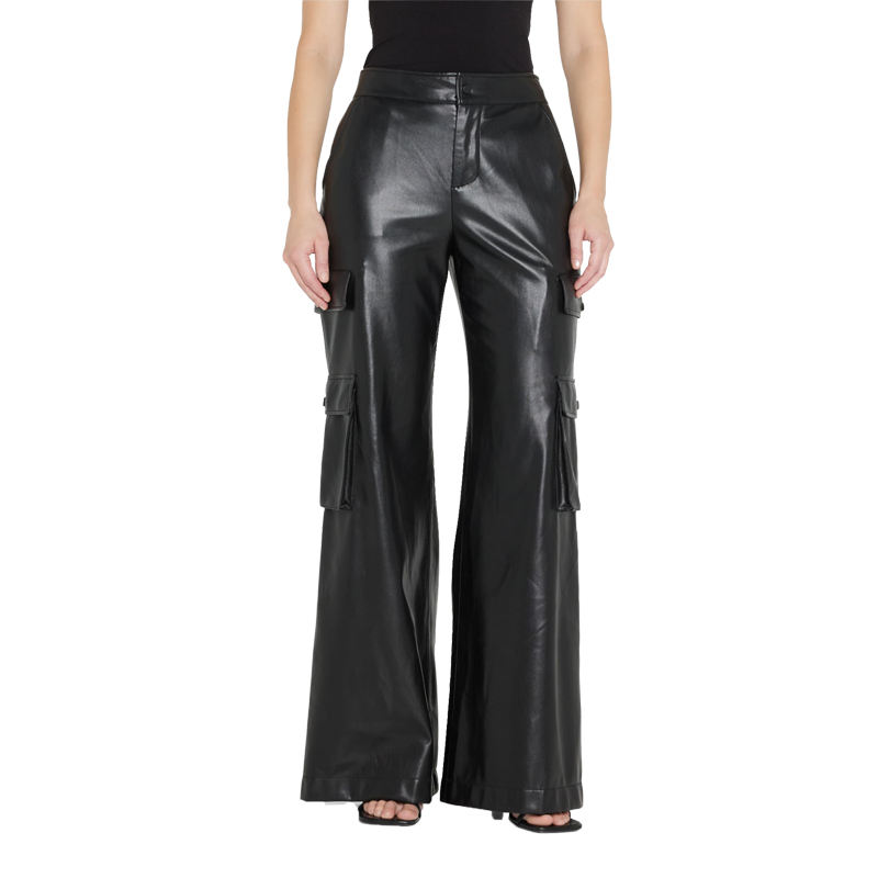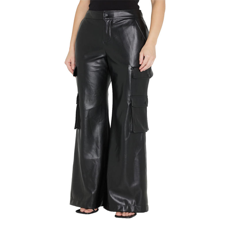 Pantalon en jean extra long plat à taille haute pour femmes pantalon en cuir cargo noir droit à jambe large pour femmes