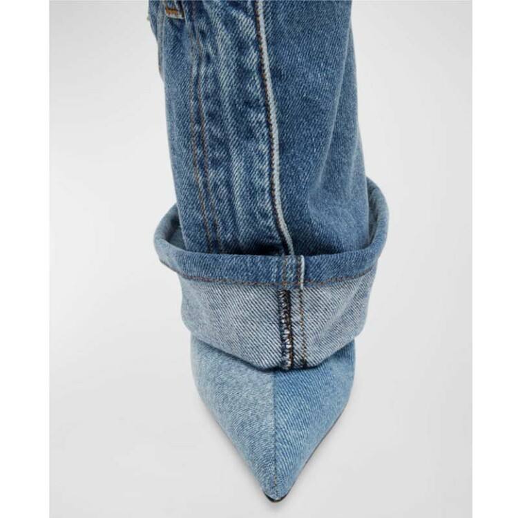 Bottes mi-mollet personnalisées pour femmes, bout pointu, Botas Dama, chaussures féminines, denim, cowgirl, nouvelles bottes en denim pour femmes 2023