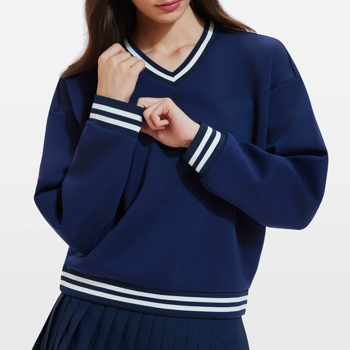 Haut de sport décontracté à manches longues pour femme, nouveau style, col en V, ample, polyvalent, séchage rapide, pour le tennis et le fitness