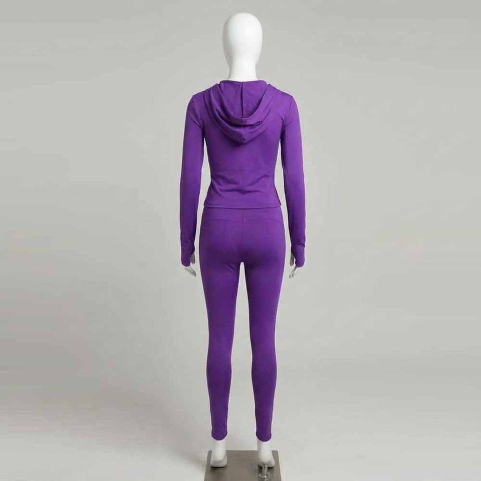 Ensemble de survêtement slim pour femme, hiver, 100% coton, sweat à capuche zippé, pantalon évasé, jogging évasé