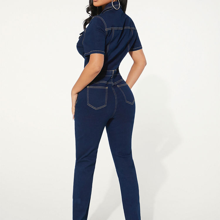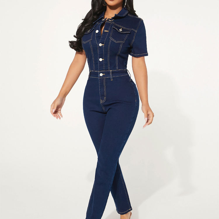 Combinaison en jean à manches courtes pour femme, tenue une pièce personnalisée, vêtements pour femme 2024