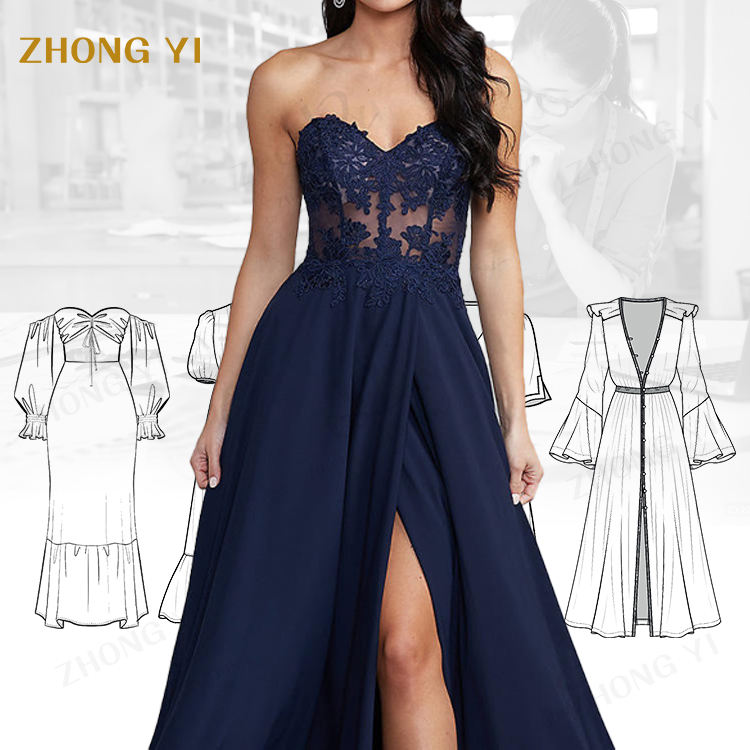 Personnalisé Femmes Printemps Été Senior Dentelle Broderie Soyeuse Longue Robe A-ligne Élégante Formelle Étage Longueur Robes de Soirée de Fête