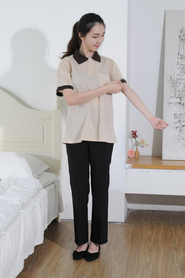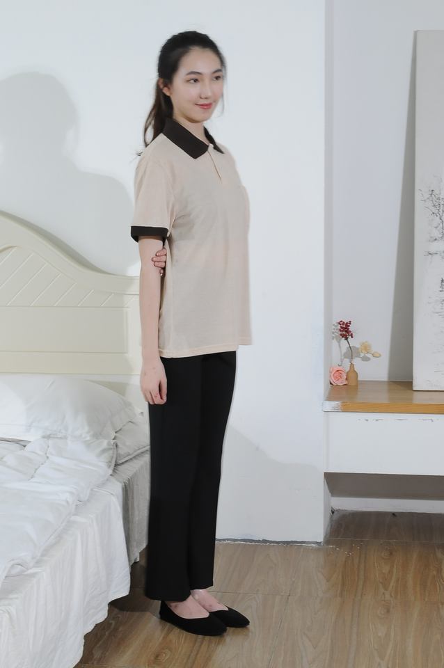 Custom Unisex Short Sleeve Summer Hotel Reception Housekeeping Uniform Polyester/Cotton Custom Logo Breathable Heat Transfer