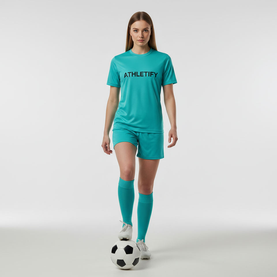 Ensemble d'uniformes de football personnalisés pour femmes, maillot et short, 100% polyester, séchage rapide, respirant, évacuation de l'humidité, impression numérique, équipe