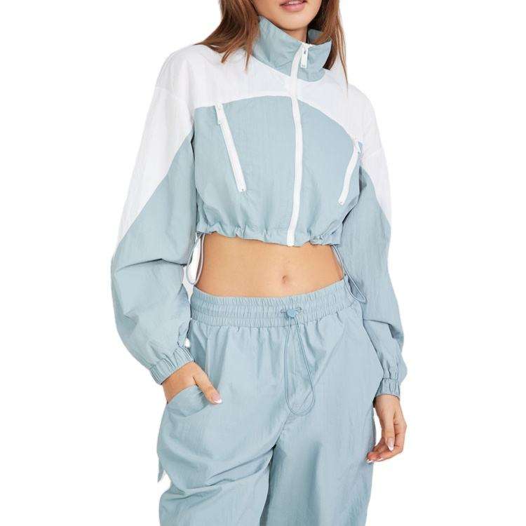 Ensemble survêtement et sweat-shirt coupe-vent zippé en coton biologique pour femme, style streetwear, couleur unie, idéal pour l'hiver