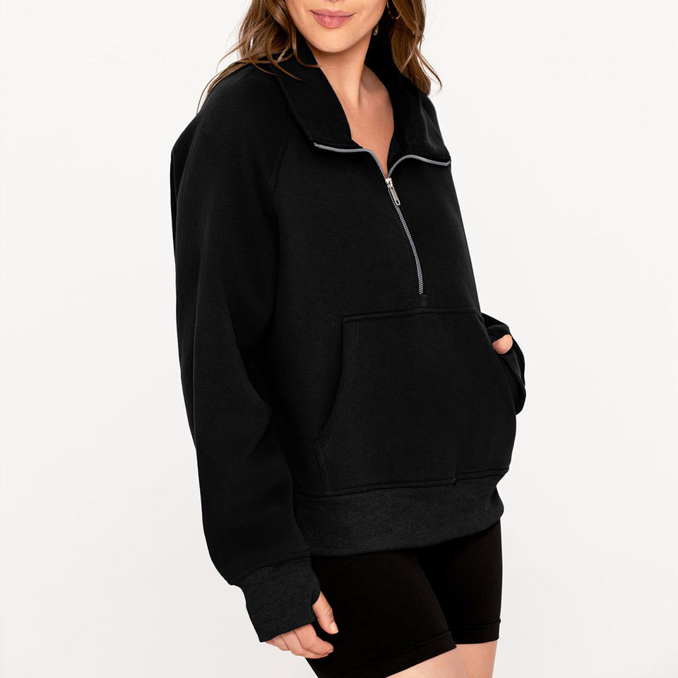 Sweat-shirt à demi-fermeture éclair surdimensionné pour femmes, sweat-shirt à capuche épais avec poches, vêtements de course décontractés secs, vêtements de jogging