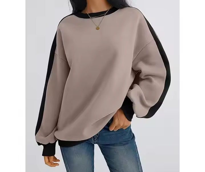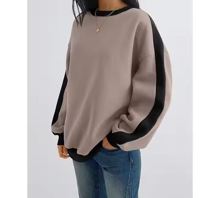 Pull-over surdimensionné à manches longues et col rond personnalisé pour femmes de haute qualité, mode streetwear décontractée