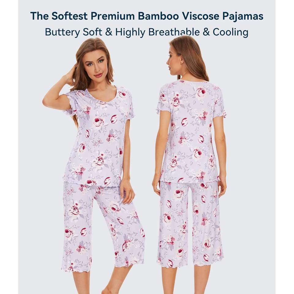 Ensemble de pyjama pour femmes personnalisé, haut à manches courtes, pantalon capri, viscose bambou, vêtements de nuit, tailles S-4X